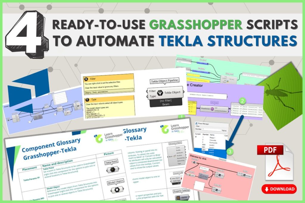 Grasshopper has many components, but don’t feel overwhelmed! Focus on learning a few important ones first. Here’s a helpful list of 12 essential Tekla Live Link components you’ll regularly use to automate your Tekla Structures models. Download PDF from masterclass materials.