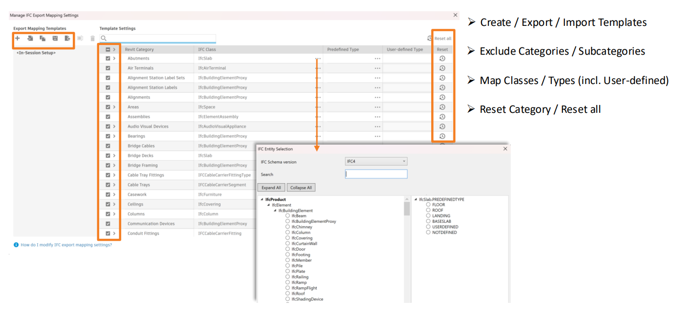 - Global category mapping defines the default behavior. Tells Revit, ok we are going to map this Revit category with this IFC entity (class). You can set it up as I described above.