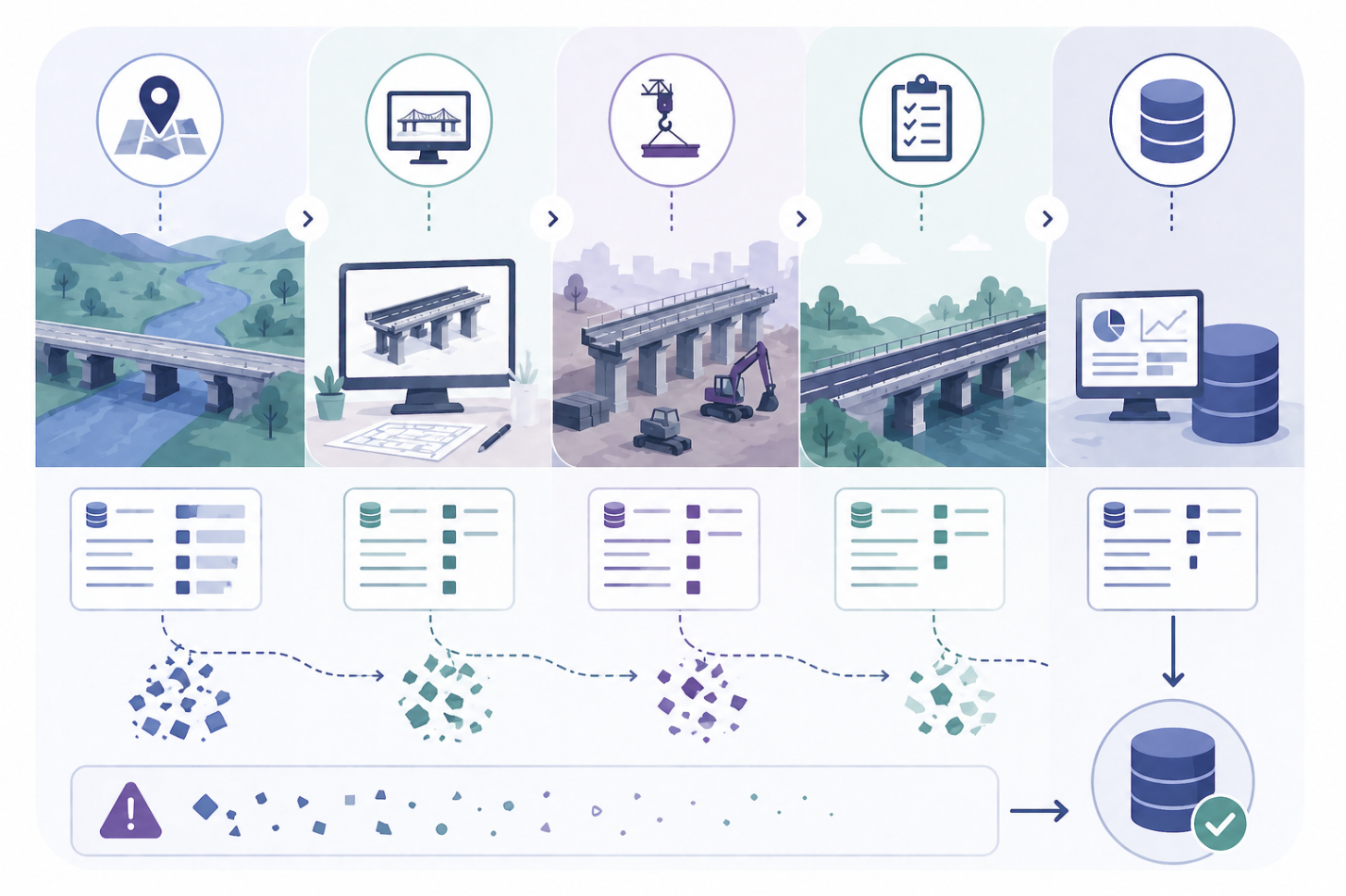 Jednym z największych wyzwań w projektach infrastrukturalnych jest utrzymanie ciągłości danych w całym cyklu życia projektu.