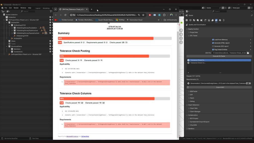 Dane z pomiarów (np. skaningu laserowego) są porównywane z modelem IFC, aby sprawdzić, czy obiekt został wykonany zgodnie z projektem.